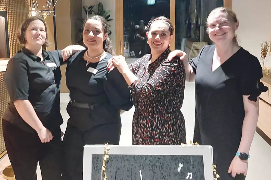 Ziel war, die Gäste mit einer gelungenen Kombination aus Musik und Kulinarik zu begeistern. So deckten Andrea, Melanie und ich die Tische festlich ein. Vivienne war dafür zuständig, die Beleuchtung einzurichten, um für eine gemütliche Atmosphäre zu sorgen.