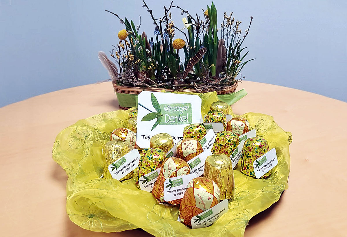 Die Hauswirtschaft unterstützt, neben ganz vielen weiteren Leistungen, den nachhaltigen und bewussten Gästeservice. Denn ob in der Krankenhausküche, im Alterszentrum, im Hotel oder zu Hause: Was auf den Teller kommt, entscheidet über unser Wohlbefinden! Eine schöne Gelegenheit, uns mit einer süssen Geste (siehe Foto) bei allen Acherhof-Mitarbeitenden aus dem Bereich Hotellerie und Hauswirtschaft für ihren täglichen Einsatz zu bedanken.